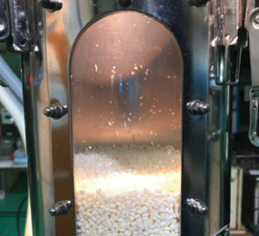 樹脂ペレットが帯電し、ホッパー点検窓に付着。残量検知センサーが付着ペレットに反応し誤作動する為、材料切れが発生。目視でも残量確認が困難。